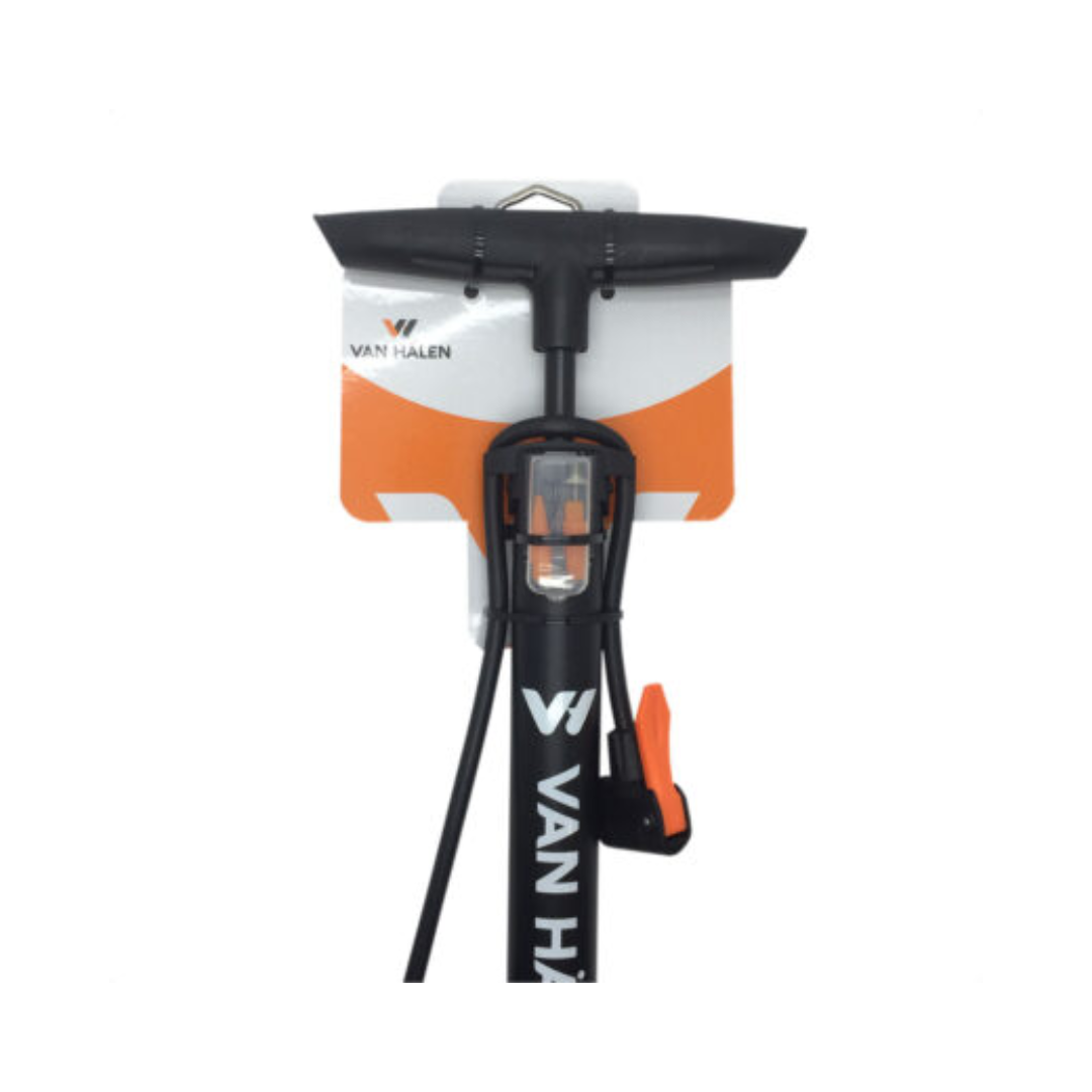 El inflador de pie Van Halen VAN705 ofrece una presión máxima de 160 PSI, equipado con manómetro analógico para una lectura precisa. Su construcción en acero y aluminio asegura durabilidad y estabilidad. Cuenta con cabezal dual compatible con válvulas Presta, Schrader y Dunlop, además de 4 picos adicionales para diversos inflables. Manguera de 60 cm y diseño ergonómico para un uso cómodo y eficiente.