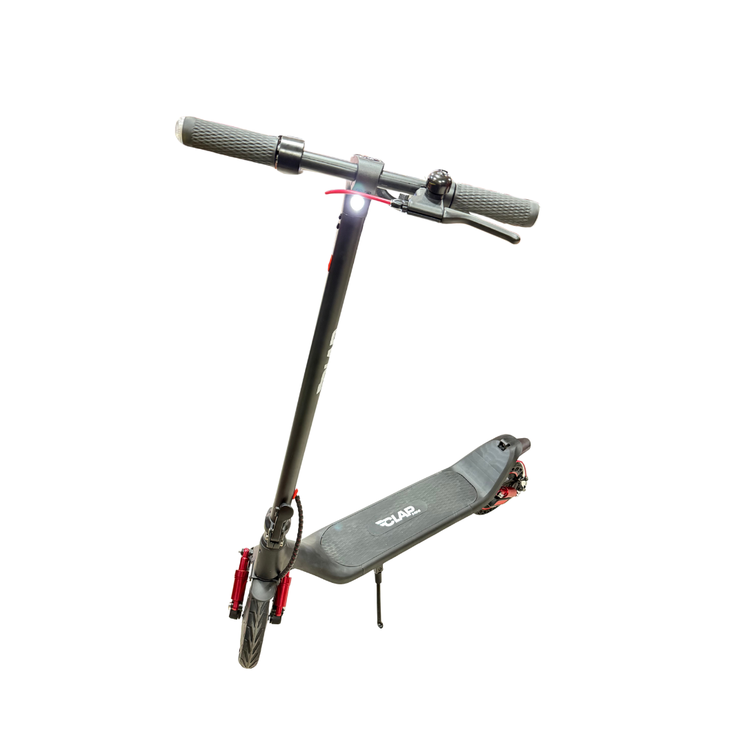El monopatín eléctrico CLAP MINI combina eficiencia y respeto por el medio ambiente. Cuenta con una autonomía de 25 km y alcanza velocidades entre 20 y 25 km/h gracias a su motor de 350 W y batería de litio de 36 V/7,5 Ah. Sus ruedas sólidas de 8.5x2" y frenos eléctricos junto con disco trasero garantizan seguridad. Dispone de suspensión delantera y trasera, cuatro modos de conducción, y un cargador de 42 V/2 Ah con tiempo de carga de 4 a 6 horas. Incluye faro LED, luz de freno, display informativo y funciones avanzadas como control crucero y app Minirobot. Soporta hasta 100 kg y pesa 16 kg.